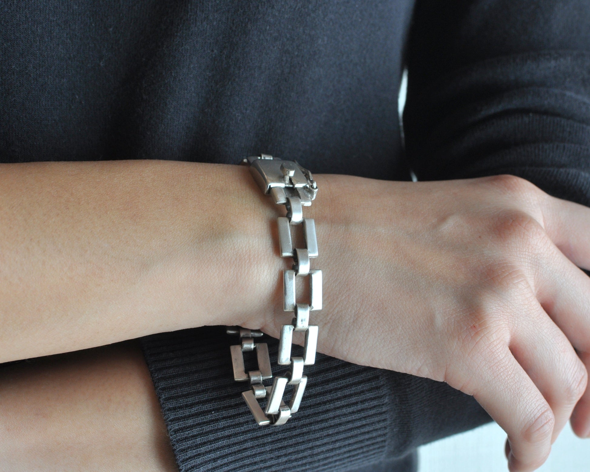 角形のコマが繋がったブレスレット。ホールマーク入りです。こちらのホールマークについて調べたところLos Ballesterosという工房で作られた1980年代のものだと推測されます。