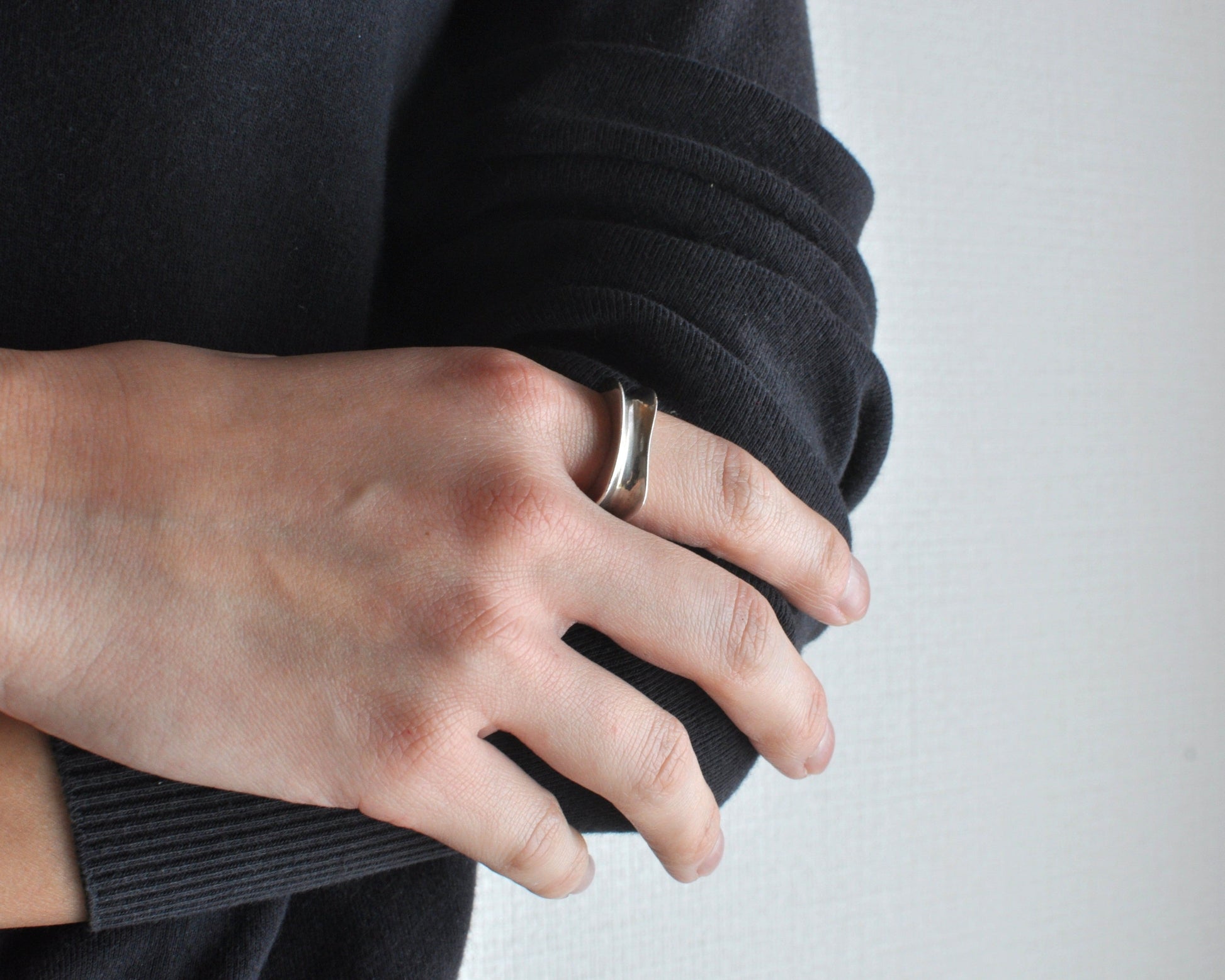 トップが窪んでいるデザイン。シンプルなデザインで着用しやすいリングです。
