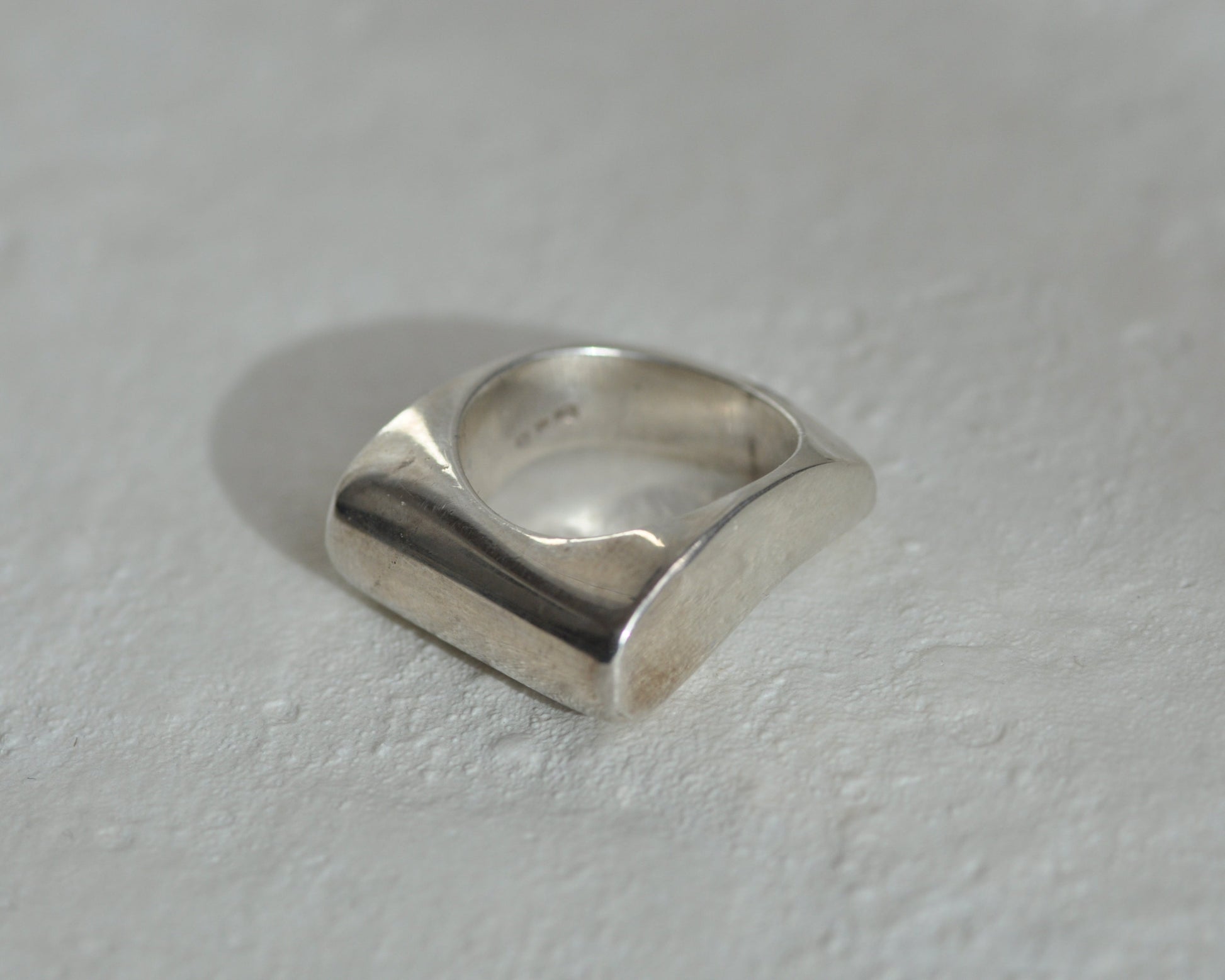 スクエア型ですが、リング自体が凹んでいる独特なデザインです。