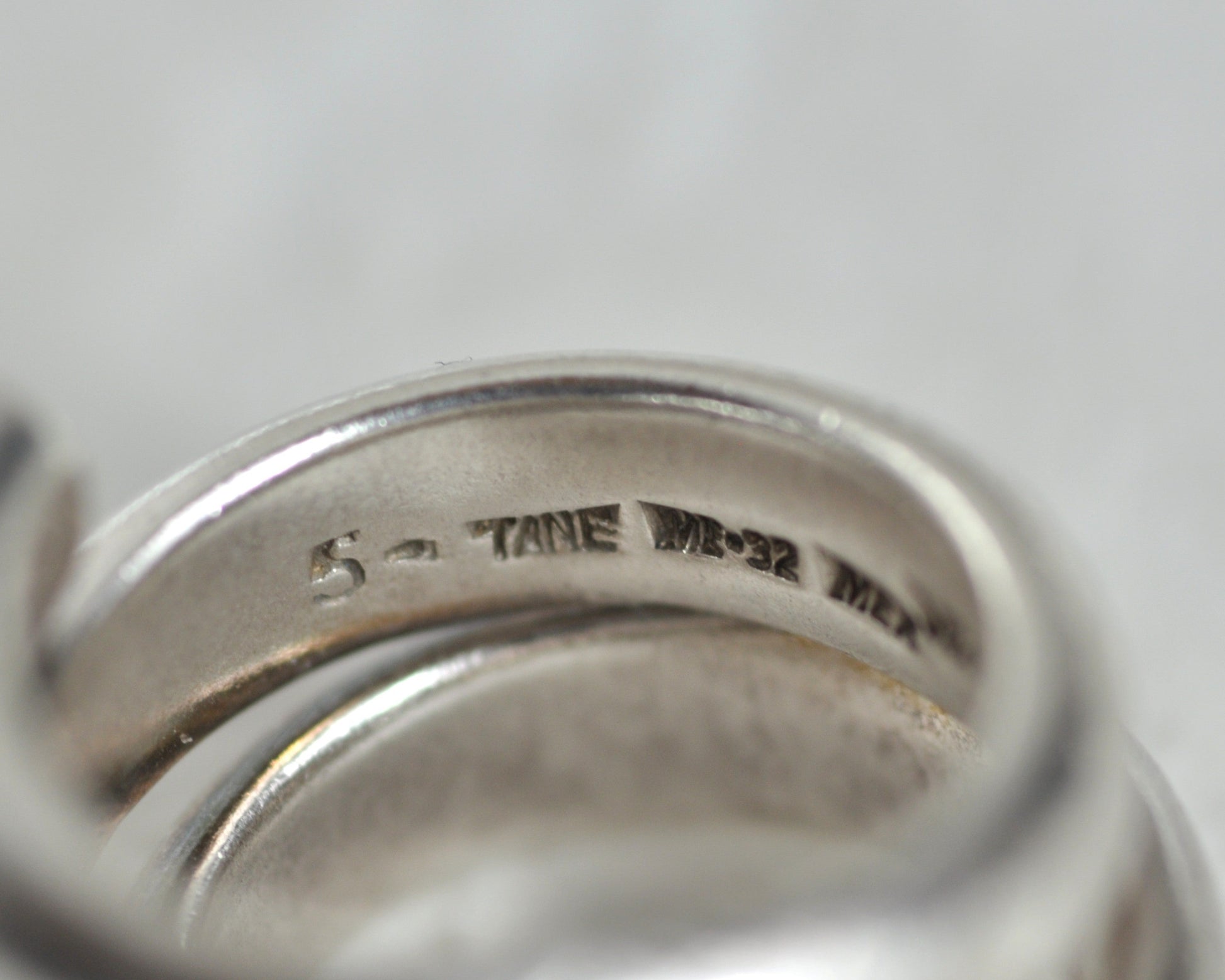 メキシコのジュエリーブランドTANEのヴィンテージリング。かなり小さいサイズですがボリュームがあるので小指に一つだけ付けてもかっこいいと思います。